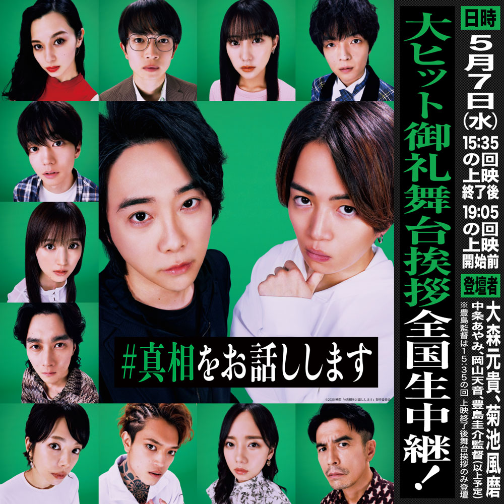 この度、映画「#真相をお話しします」大ヒット御礼舞台挨拶&全国同時生中継を下記日程にて開催することが決定しました!